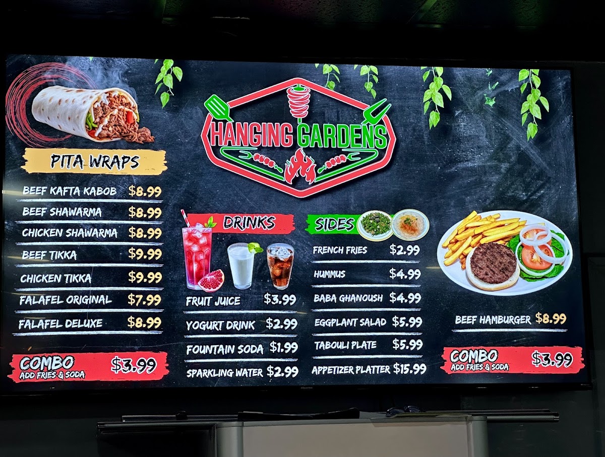 1 skewer of Seasoned Ground Angus Beef & Lamb Kabob grilled over mesquite charcoal, wrapped in a fluffy pita bread with tomatoes, onions, pickle spears, and your choice of 1 sauce included. Add Fries & Fountain Drink for only $5.99 more.