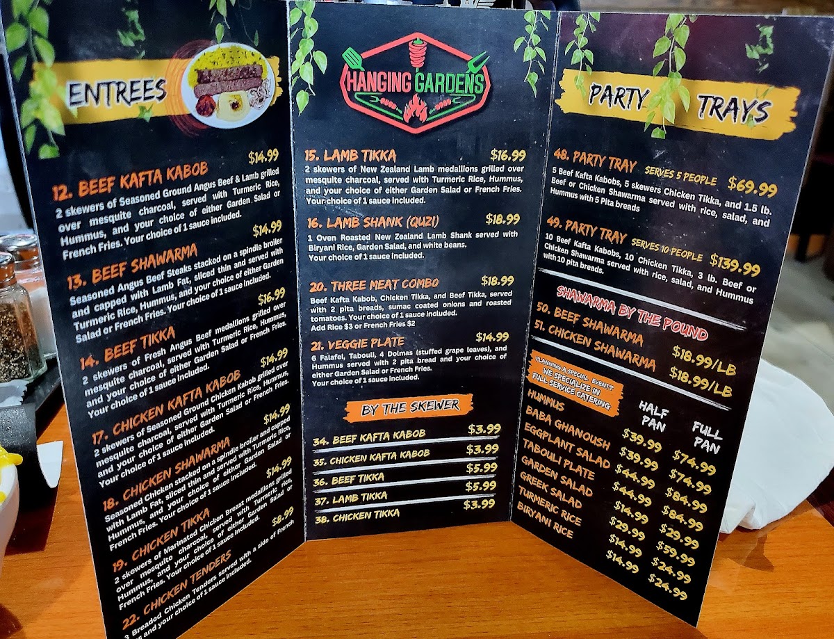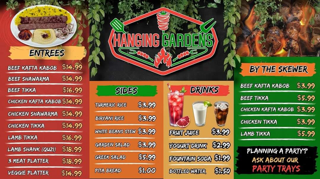 Beef kafta kabob, chicken tikka, and beef tikka, served with Turmeric rice, Hummus, garden salad and 1 pita bread. Your choice of 1 sauce included.